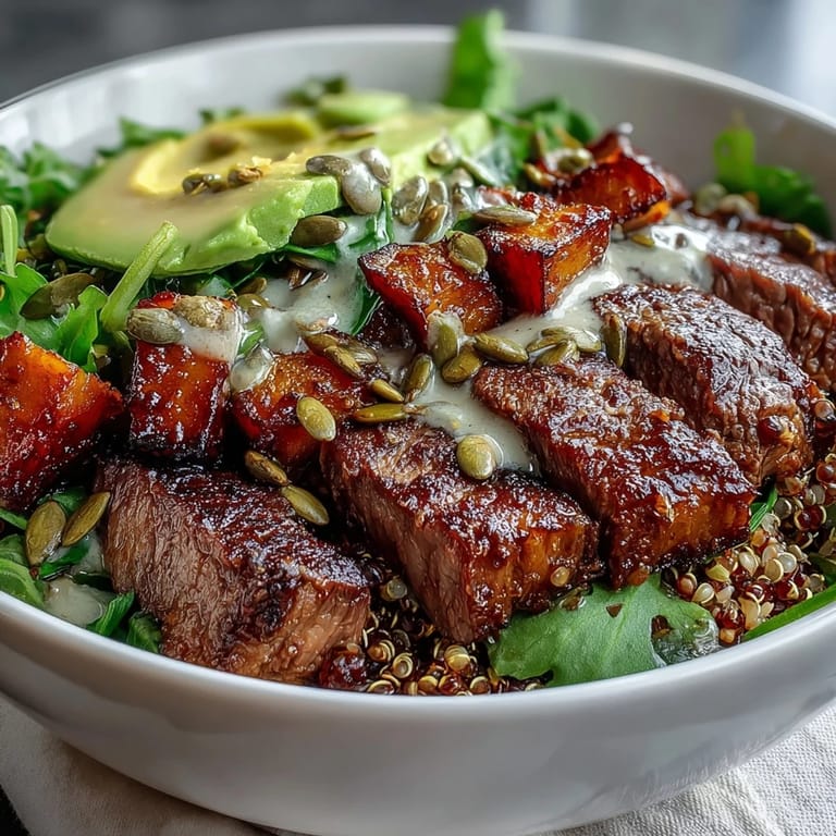 Pin it The skillet was still hissing when I realized I'd never paired steak with butternut squash before. My neighbor had dropped off a rogue squash from her garden, and I had flank steak thawing with no real plan. I tossed cubes into the oven with cumin and garlic powder, let the steak sizzle in a smoky marinade, and piled everything over quinoa with whatever greens I had. That bowl became my new weeknight anchor.