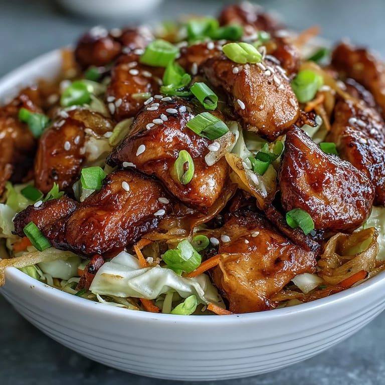 My neighbor smelled this through the kitchen window and knocked on the door to ask what I was making. She thought I'd ordered from the new place downtown. When I told her it was just chicken and cabbage, she didn't believe me until I spooned her a taste. Now she texts me every few weeks asking if it's egg roll bowl night.