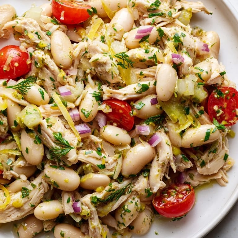 This salad welcomes variation like an old friend. I've added diced avocado when I wanted something creamier, and swapped in fresh basil when dill wasn't available. The backbone of beans, chicken, and lemon remains, but everything else is negotiable based on what's in your crisper drawer.