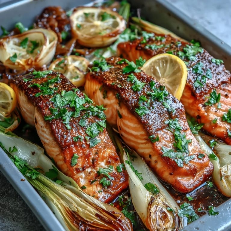 Pin it The smell of roasted leeks hit me before I even opened the oven door. I was testing this recipe on a Wednesday night when I had no energy for dishes, and the whole thing came together on one pan. The salmon came out perfectly tender, the vegetables sweet and charred at the edges. That bright parsley dressing I whisked together while everything roasted became the thing I started putting on just about everything that week.